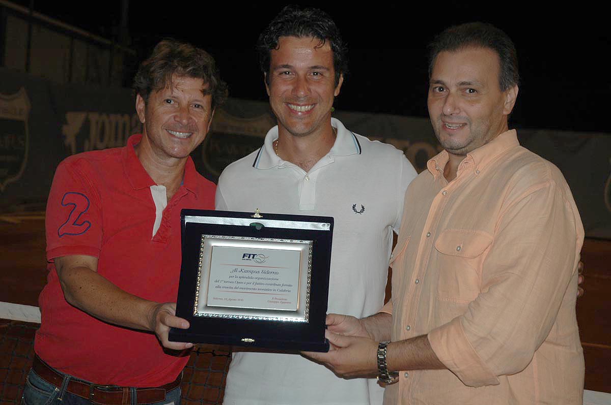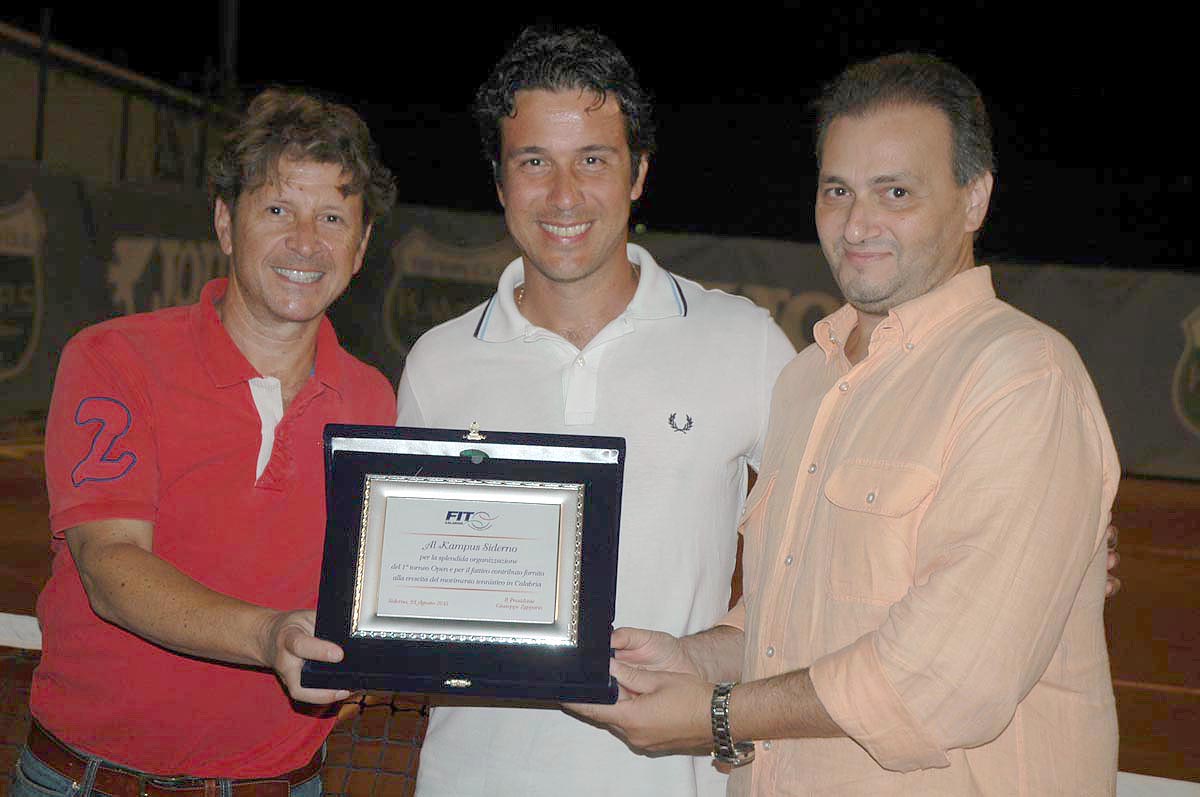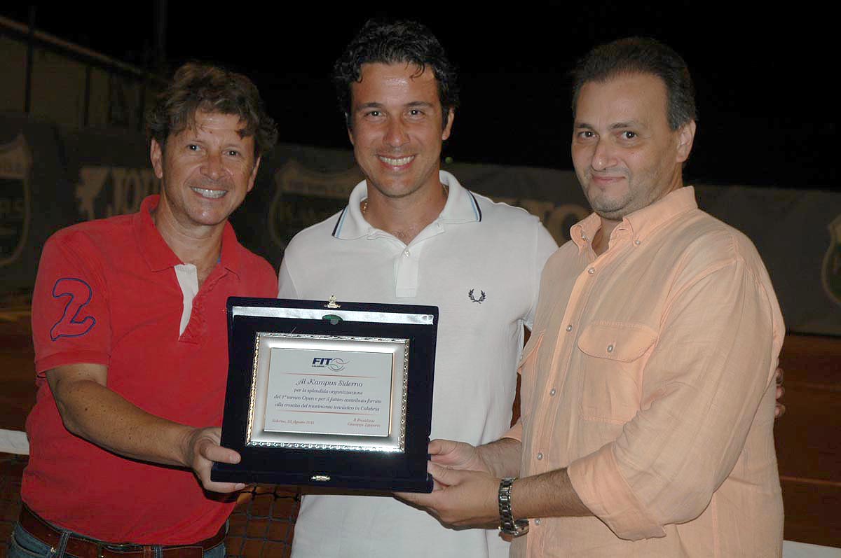 Si è concluso Domenica 23 Agosto 2015, il 1° Torneo Open Kampus Siderno (RC) con la vittoria del siciliano di Nicolò Schilirò che dal 10 agosto ha chiamato in campo le migliori racchette sui campi del Circolo Kampus, ubicato in via mediterraneo, tra Siderno e Locri . Schilirò, ben noto alle cronache tennistiche calabresi per i suoi notevoli successi, ha avuto successo su Andrea Viceconte di Castrovillari, altro buon tennista che si è dovuto arrendere al più giovane avversario.
