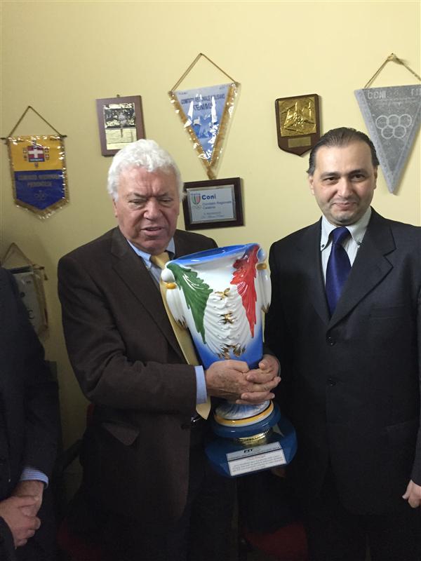 In occasione della manifestazione organizzata dal CONI Cosenza che ha visto come ospiti d’onore il presidente del CONI Giovanni Malagò, l’ambasciatore FIT nel mondo Nicola Pietrangeli, Don Antonio Mazzi e numerose personalità del mondo politico, universitario, giornalistico e sportivo, conclusasi con il taglio del nastro che inagurava al CONI POINT di Cosenza la mostra del fuoco olimpico, il nostro presidente Joe Lappano con i dirigenti del Comitato Regionale FIT, i rappresentanti degli UDG ed alcuni presidenti di circoli affiliati hanno avuto l’onore di ospitare e premiare, negli uffici del Comitato FIT Calabria di Cosenza, il “mito del tennis italiano” Nicola Pietrangeli, al quale il presidente Lappano ha personalmente consegnato il Premio Maurizio Quintieri 2014.